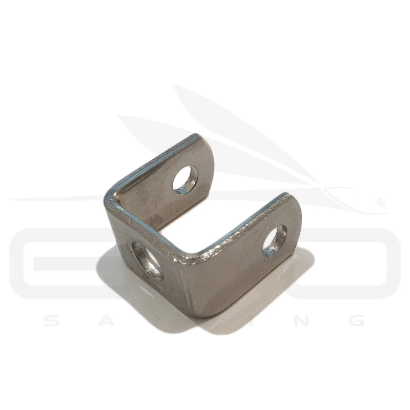 La chape d’articulation de tangon Hobie Cat est une pièce en inox qui se trouve en bout de tangon (coté poutre), et qui sert de liaison entre le tangon de spi et la poutre du catamaran Hobie Cat.