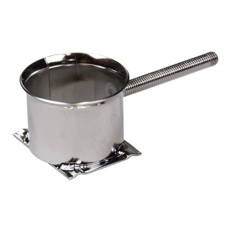 La coupelle inox de pied de mat pour Optimist, est la partie coulissante du pied de mat qui s’adapte sur la platine fixé sur la coque de l’Optimist. Le haut de la coupelle est évasé pour permettre le basculement du mat en fonction de la quète.