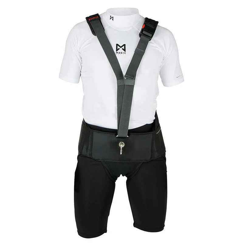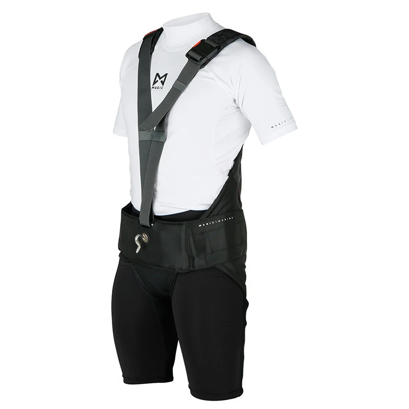 Le Harnais de trapèze Magic Marine WING est une ceinture légère idéal pour la pratique de la voile légère en Skiff et catamaran de sport. Le Wing Harness est un harnais culotte enveloppant offrant un excellent maintien du dos et grande mobilité. Le principe du harnais culotte réside dans le fait d’avoir un seul passant entre l’assise et la barre.