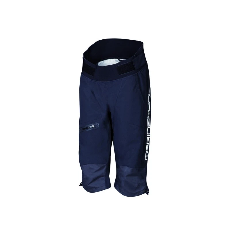 Bermuda technique ultra léger 2,5 couches, coutures entièrement soudées, étanche et respirant, DWR, genoux préformés, taille élastique pour un meilleur ajustement, protection néoprène à la taille, poche de jambe avec zip déperlant, renforts au fessier et aux genoux, taille ajustable avec bande élastique