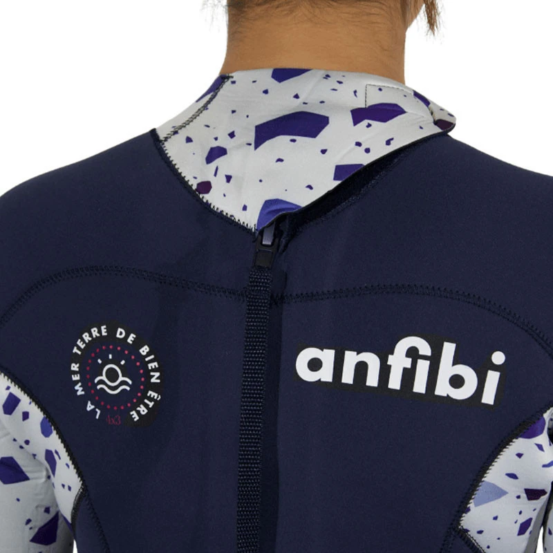 Anfibi innove avec une double fermeture au niveau du col. Le velcro à l’avant et le velcro à l’arrière vous permettent d’ajuster la fermeture du col selon vos préférences, de restreindre l’entrée d’eau par temps froids et d’aérer par temps chauds. La composition en néoprène ultra stretch rend la combinaison extrêmement flexible et confortable, avec une bonne liberté de mouvements.